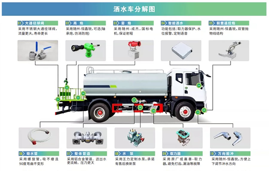 | 其他 | 1、罐体有效容积11.42立方米;运输介质:丙酮水溶液,密度:800千克/立方米,椭圆罐体尺寸为(mm):5000×2300×1480,选装矩圆罐体时尺寸为4800×2300×1520。 2、防护材料:Q235A碳钢,连接方式:左右侧面及后下部防护均采用焊接连接,后部防护断面尺寸(mm):150×50,后部防护离地高度(mm):480。3、ABS控制器型号为 4460046300,生产厂家为威伯科汽车控制系统(中国)有限公司。4、文字喷涂位置和车辆颜色可变化。5、选装不带洒水平台和选装喷雾机组。 | ||