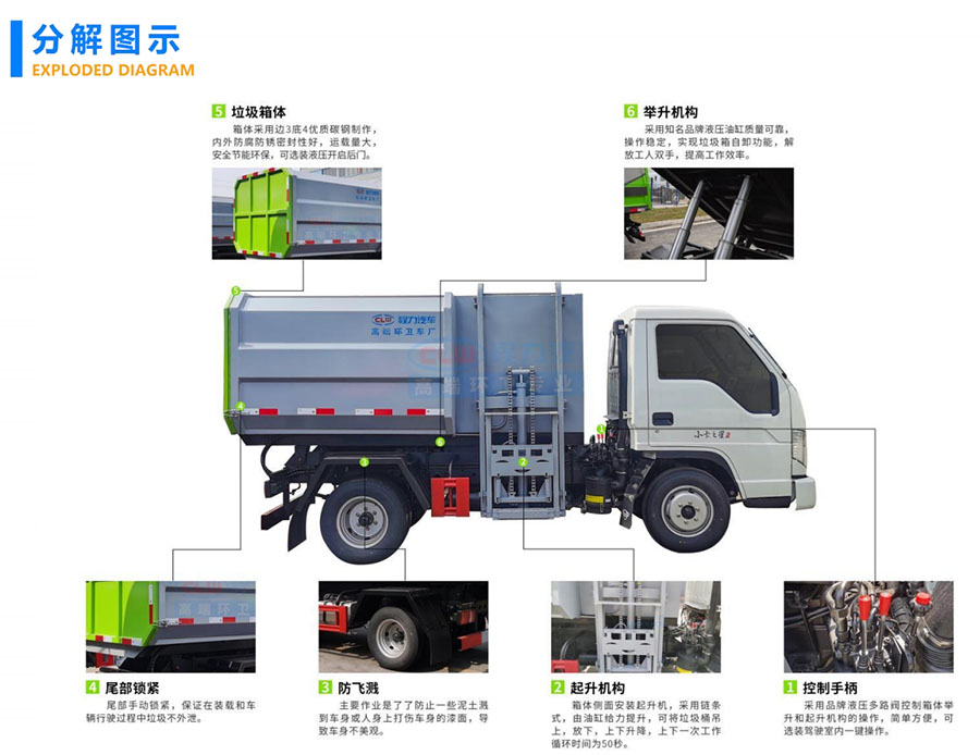 | 其他 | 1、防护材料:Q235A碳钢,连接方式:左右侧面及后下部防护均采用焊接连接,后下部防护断面尺寸(mm):100×50,后下部防护离地高度(mm):380。2、ABS系统控制方式为:双参数控制,4S/4M.ABS系统控制器型号为:CM4Y.ABS系统控制器生产厂家为:广州科密汽车电子控制技术股份有限公司.3、选装挂铁桶装置。4、车辆颜色、文字喷涂及局部细节可变化。 | ||